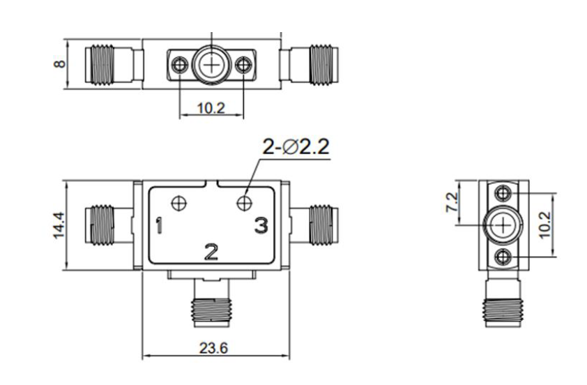 - 2.92 мм розетка (порты 1 и 3)