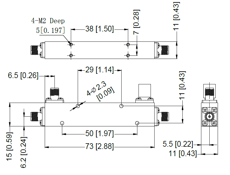 - Вносимые потери: 0.8 дБ тип, 0.9 дБ макс