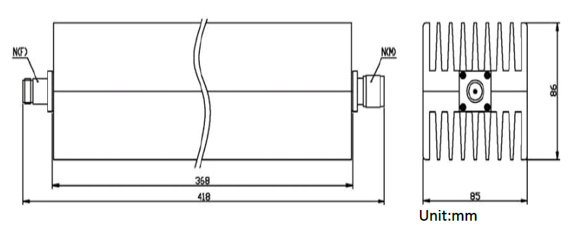 Профессиональный аттенюатор LT-A-500-A-XX-4G, 500 Вт с резьбовым соединителем N типа (вилка - розетка), предназначенный для работы с радиочастотными сигналами.